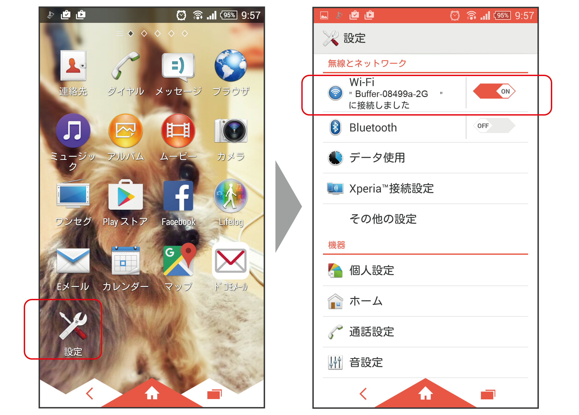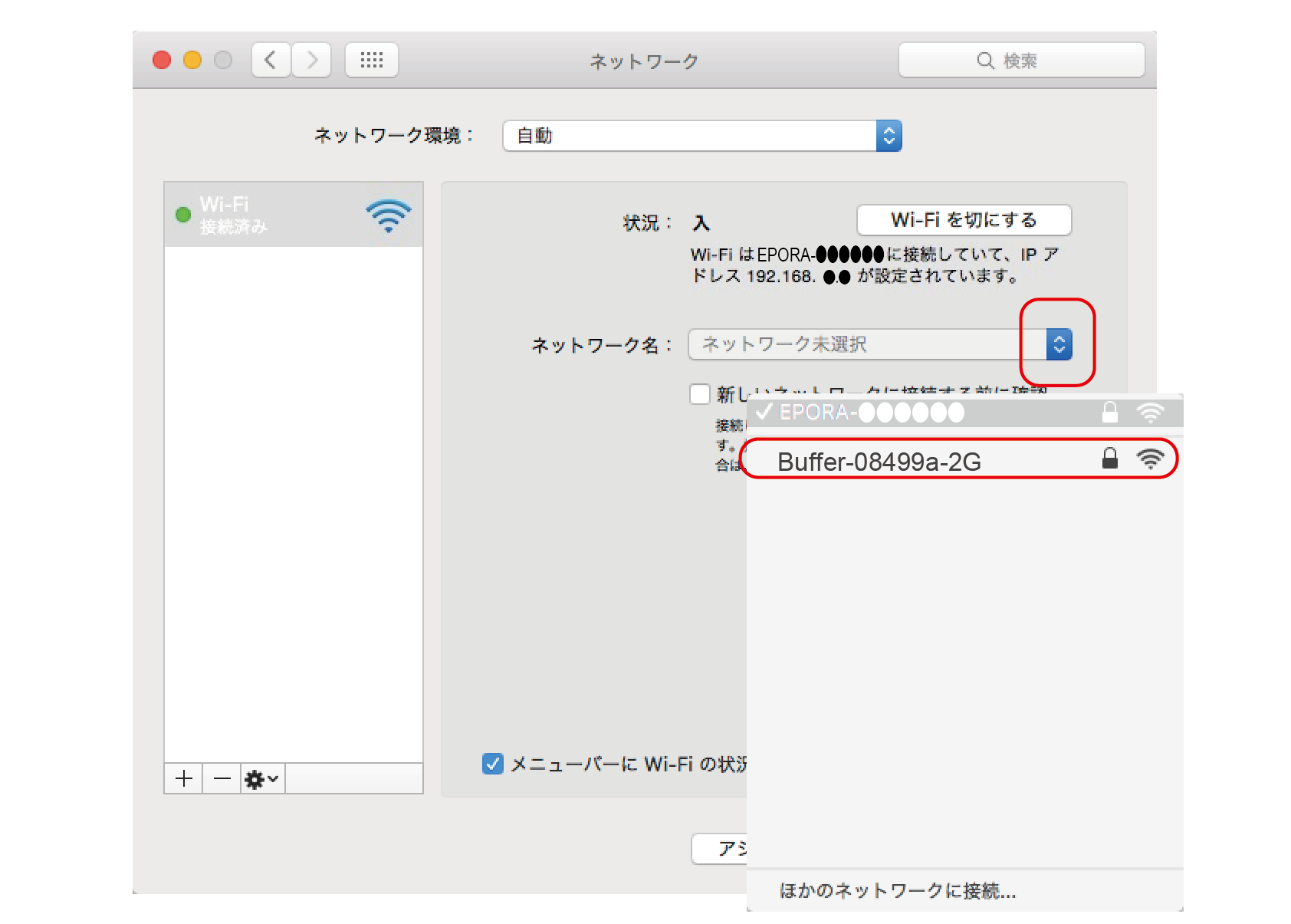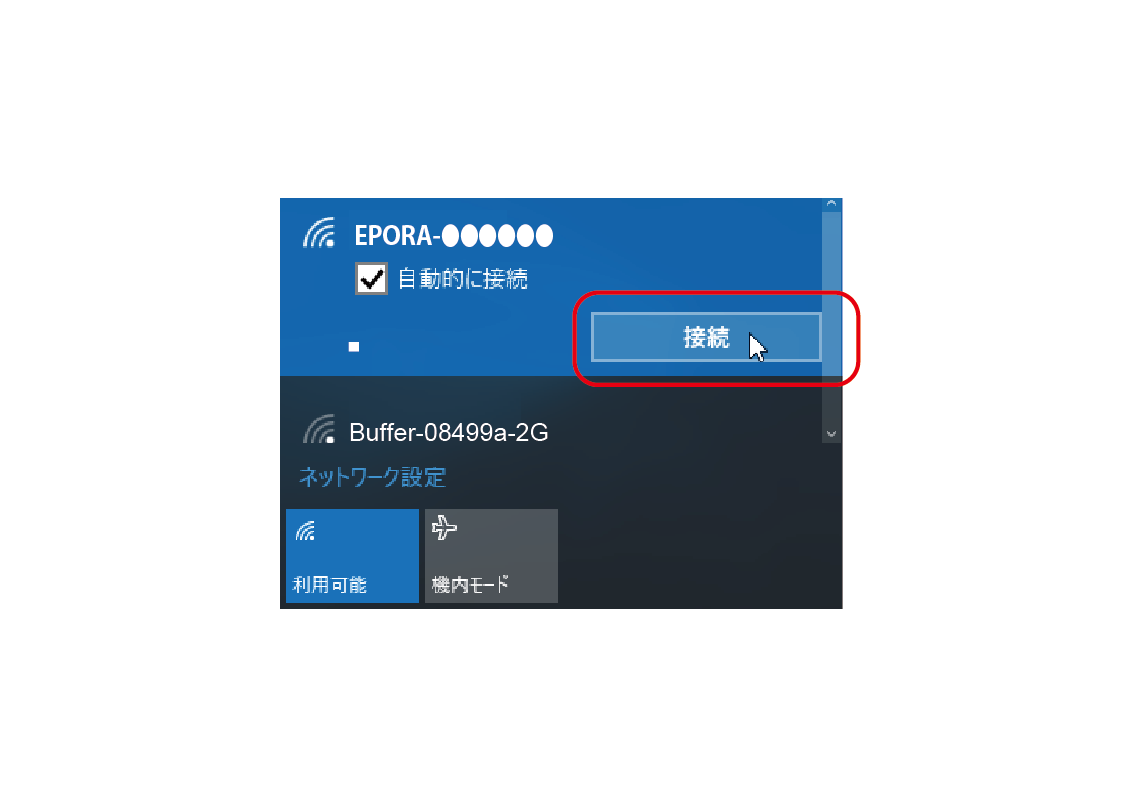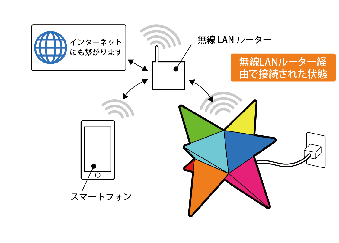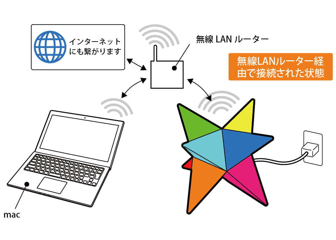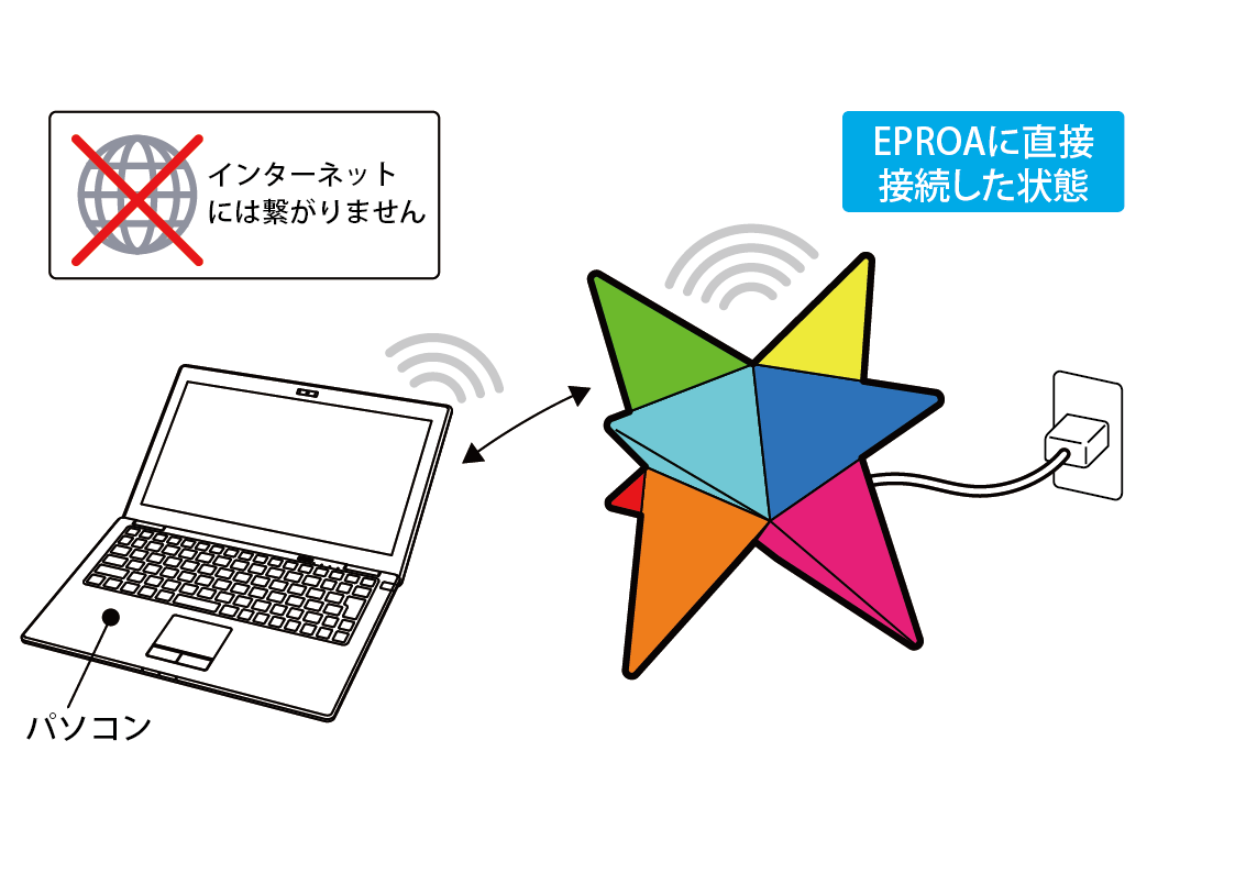 無線LANルーターへの接続方法です。無線LANルーターを介して接続すると、インターネットとEPORAの操作の両方を接続の切り替え無しに行えます。