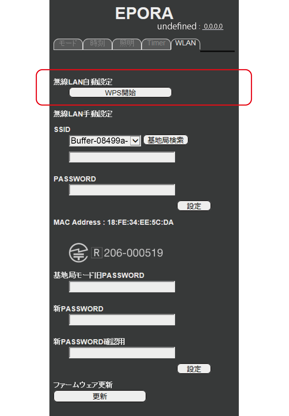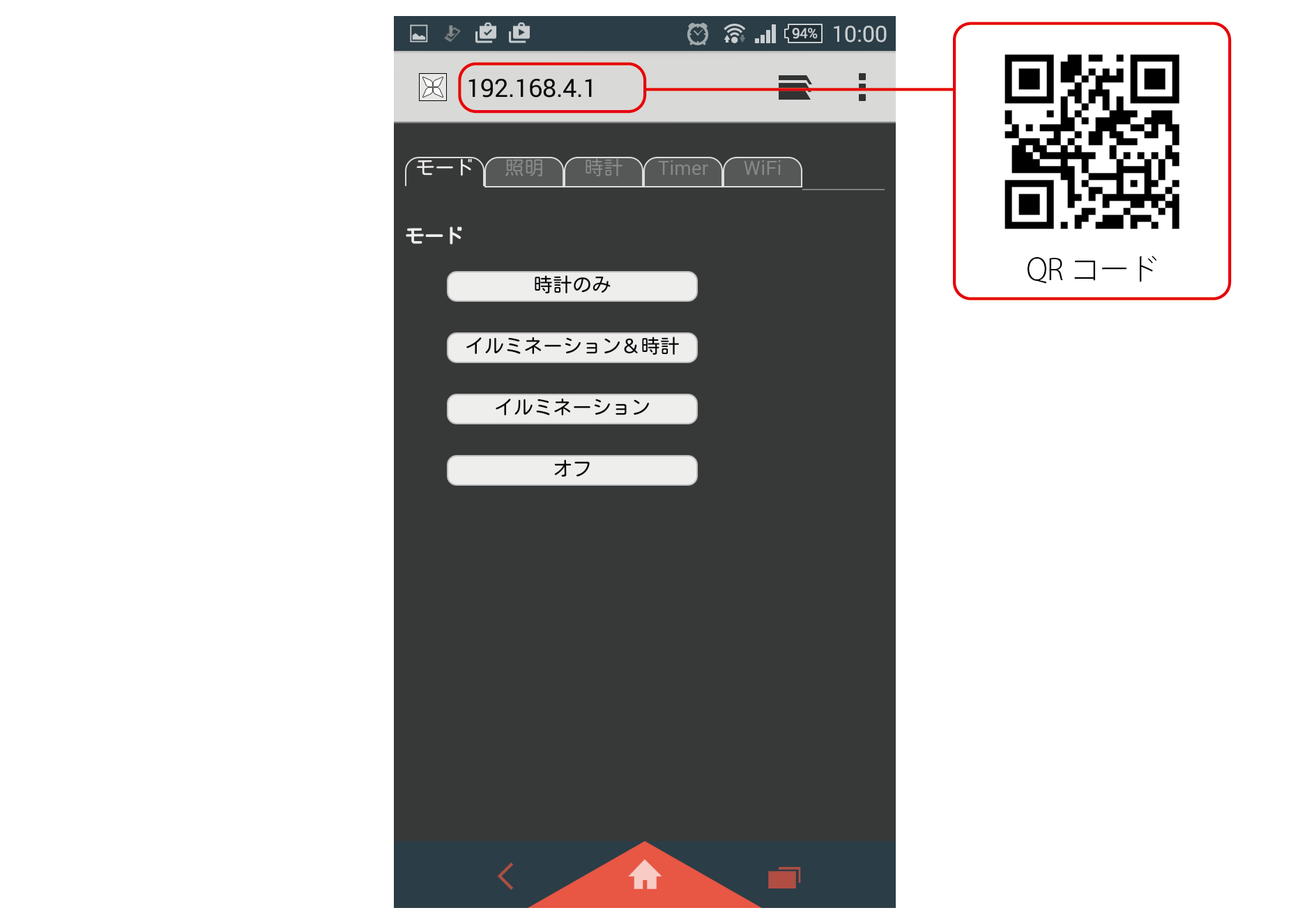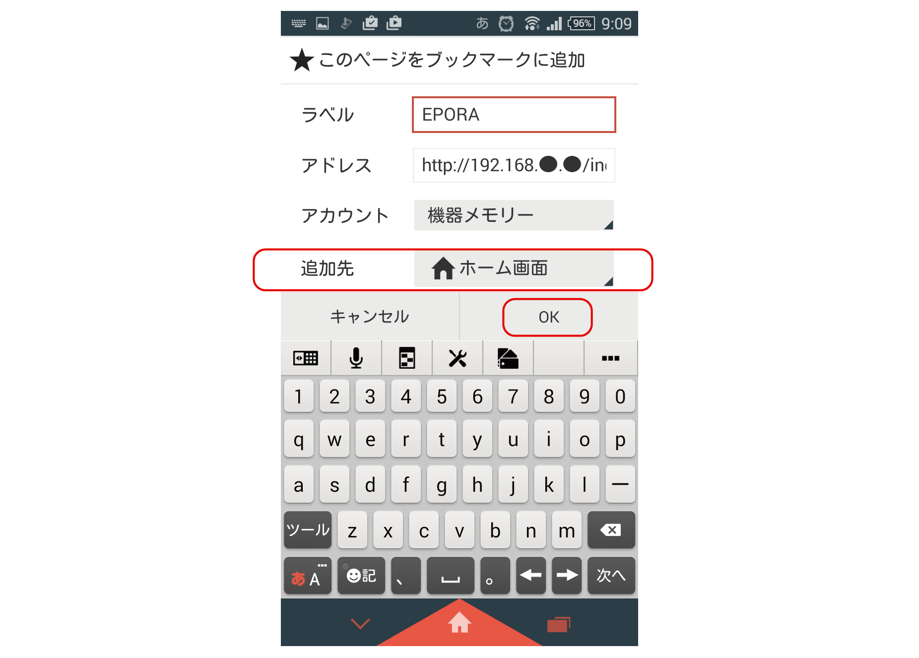 iPhoneを使っての操作です。WiFi設定でEPORAを選択し、ブラウザのアドレスバーに「192.168.4.1」と入力します。Android端末でも基本的な操作は同じです。