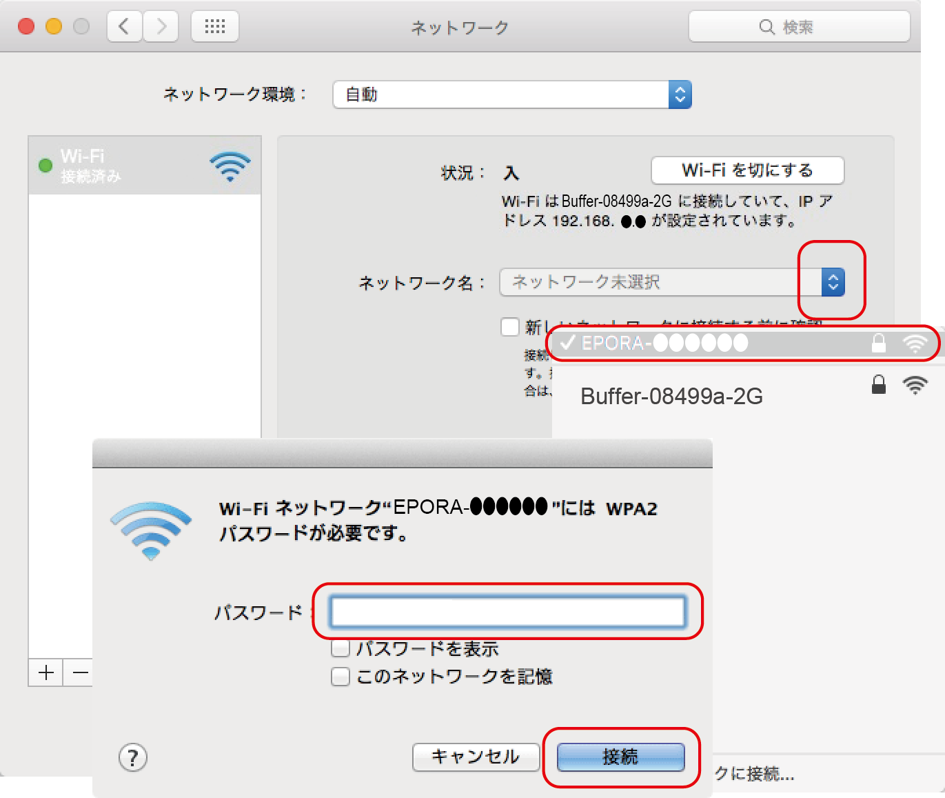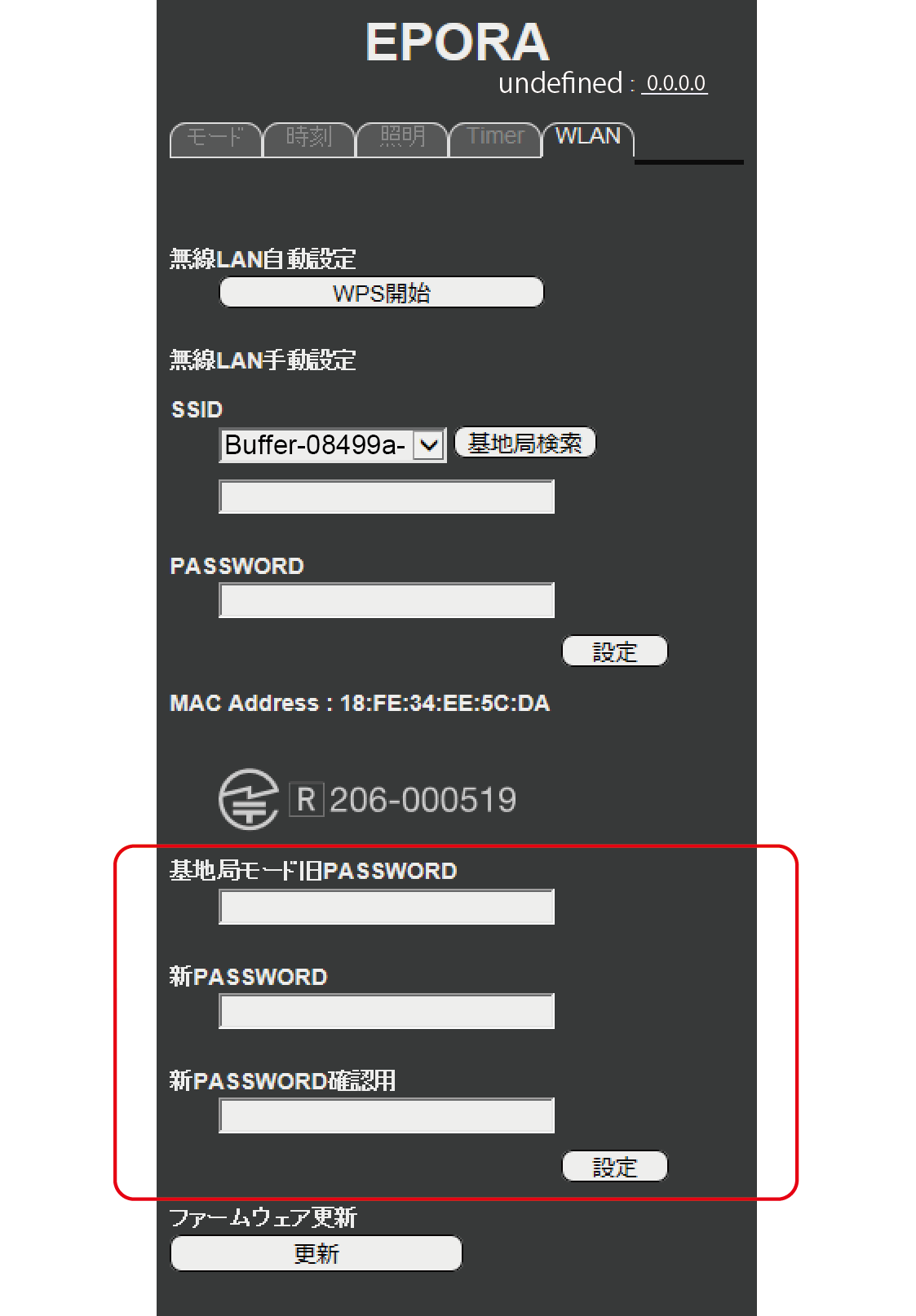 EPORAに直接接続するときのパスワードの変更の仕方です。無線LANのセキュリティ強化のため初期値から変更することを強くお勧めします。